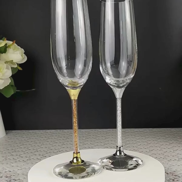 2 Taças para Champagne, em Cristal com Cristais na Base - Taças Prestige