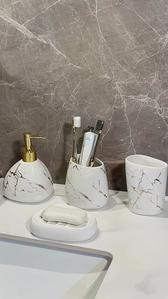 Conjunto White Marble - 5 Peças em Cerâmica