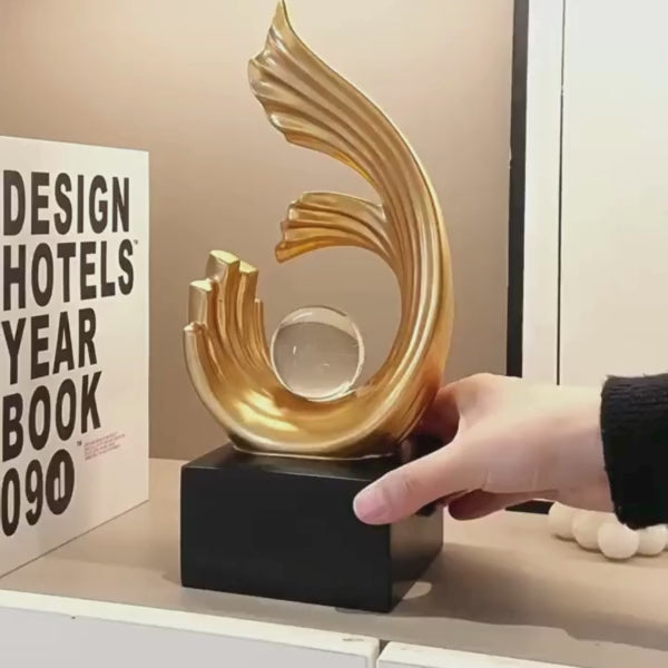Vento Aureo - Escultura Decorativa em Resina e Vidro Branco